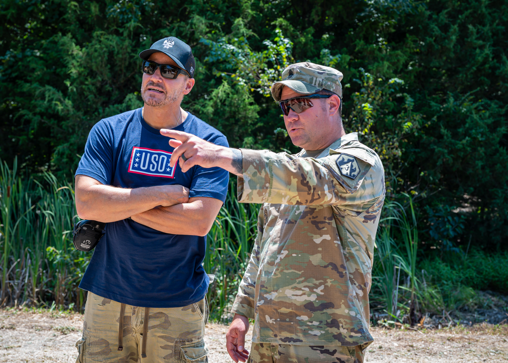 - David Boreanaz speaks with service member during 2024 USO Entertainment tour to military bases in Missouri and Illinois